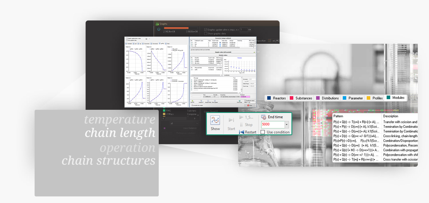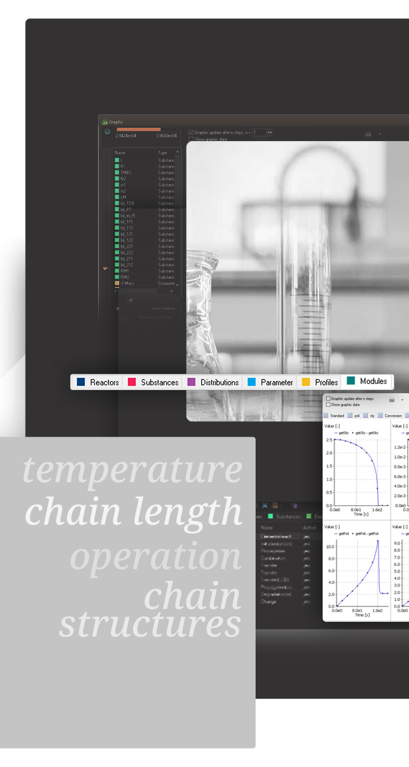 From molecules to polymer microstructures — your kinetic systems and processes, simulated with precision.